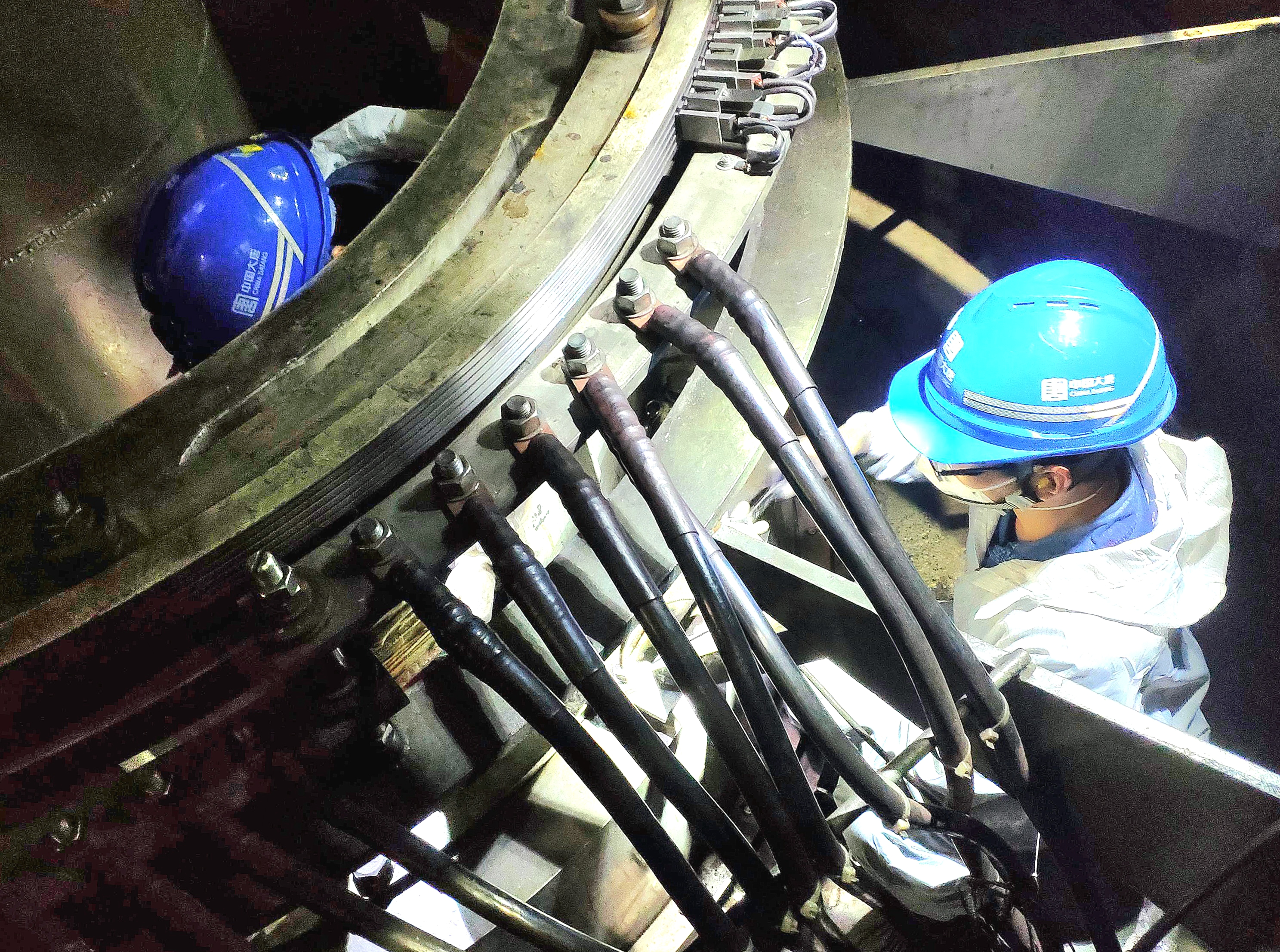 时间一分一秒地过去。终于,第一块短路板的螺栓全部拧完,工人们稍稍松了一口气。但他们没有丝毫懈怠,紧接着开始安装第二块短路板。