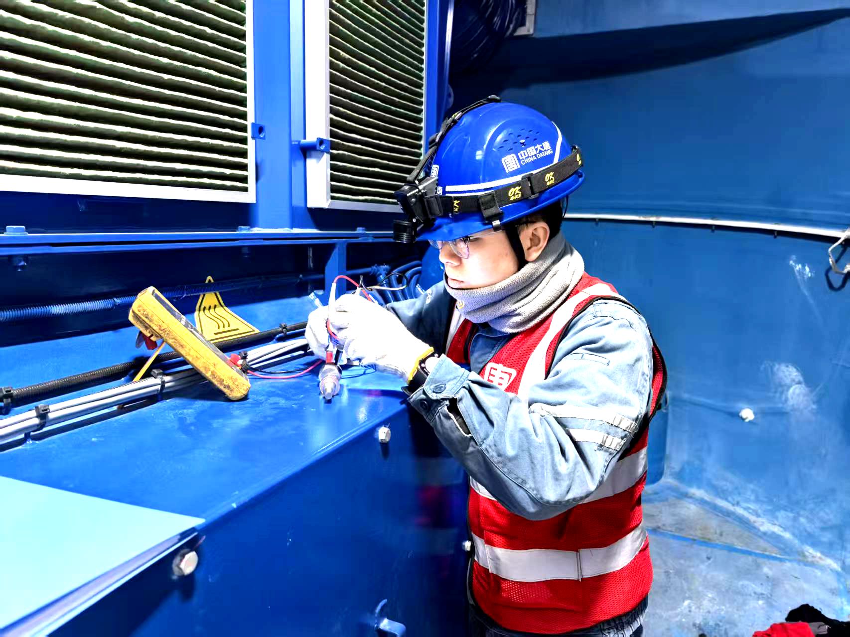 机舱盖板刚掀开一道缝,凛冽的寒风就像无数冰粒砸在脸上。他下意识侧过身用胳膊护住口鼻,借着风势稍缓的瞬间猛地推开盖板。顶着呼啸的狂风,他顺着机舱内部爬梯稳步挪到控制柜旁,迅速从工具包中掏出万用表,“停电—验电—挂牌”整套安全流程一气呵成,动作干脆利落,没有丝毫拖泥带水。
