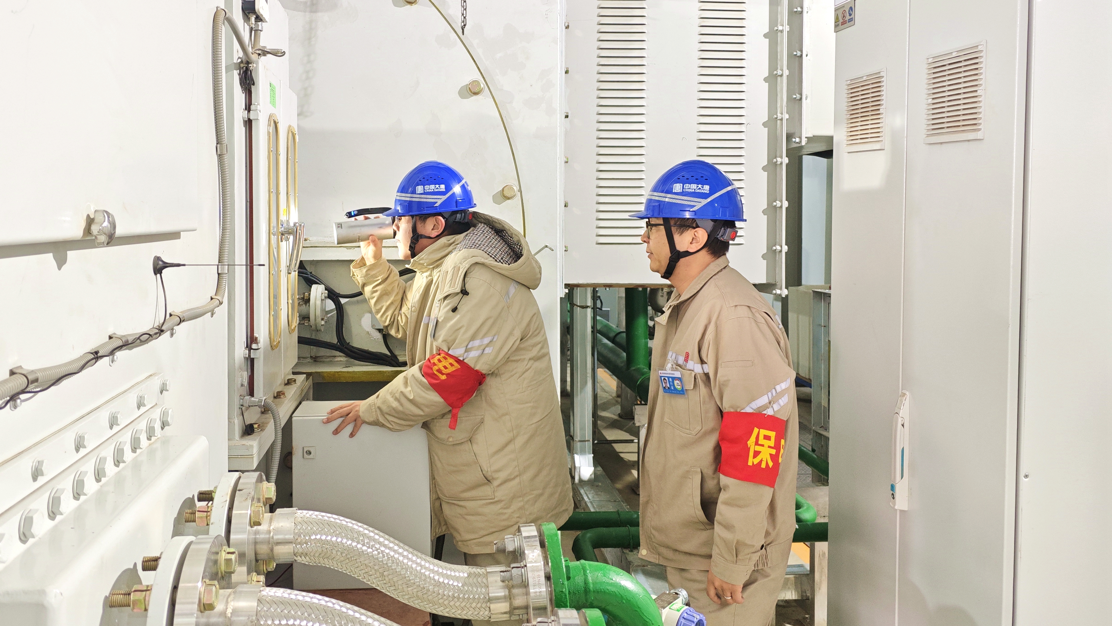 1个小时后,俩人完成对调相机的全面巡检,确认没有安全隐患,给水泵也加了油。此时,俩人搓着被冻麻的双手,看着调相机在平稳运行,为千家万户送去温暖和光明,心中不由得涌起一股自豪感和满足感。