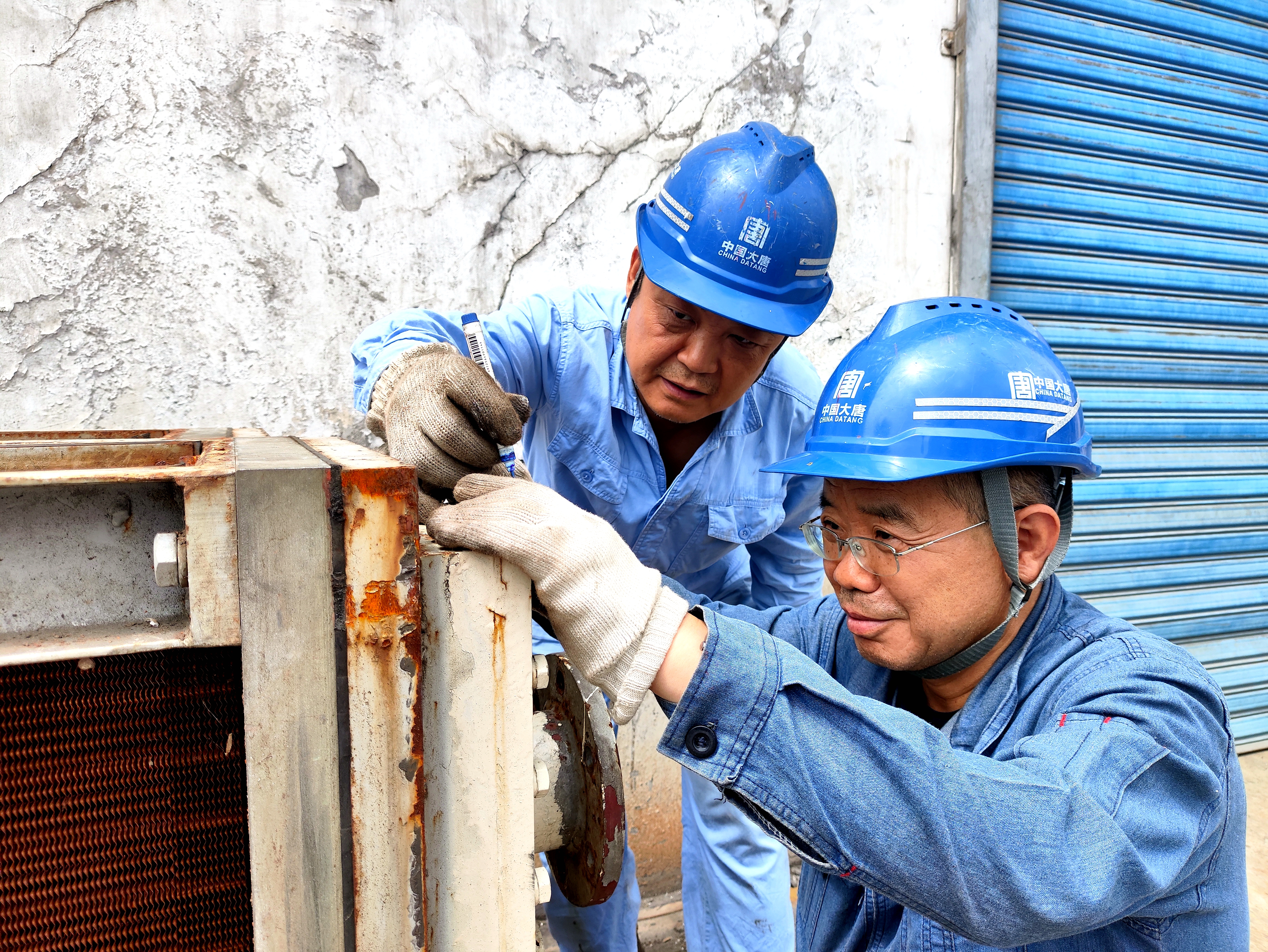 发电机氢冷器是维持发电机正常运行温度的关键设备。此次检修,计划对2号发电机4组氢冷器进行检查、除垢、疏通,去除内部水垢及腐蚀点,提升机组冷却效果。从拆卸、清理、酸洗、打水压、回装,常规需要一周时间,这次计划在4天内完成,很有挑战性。