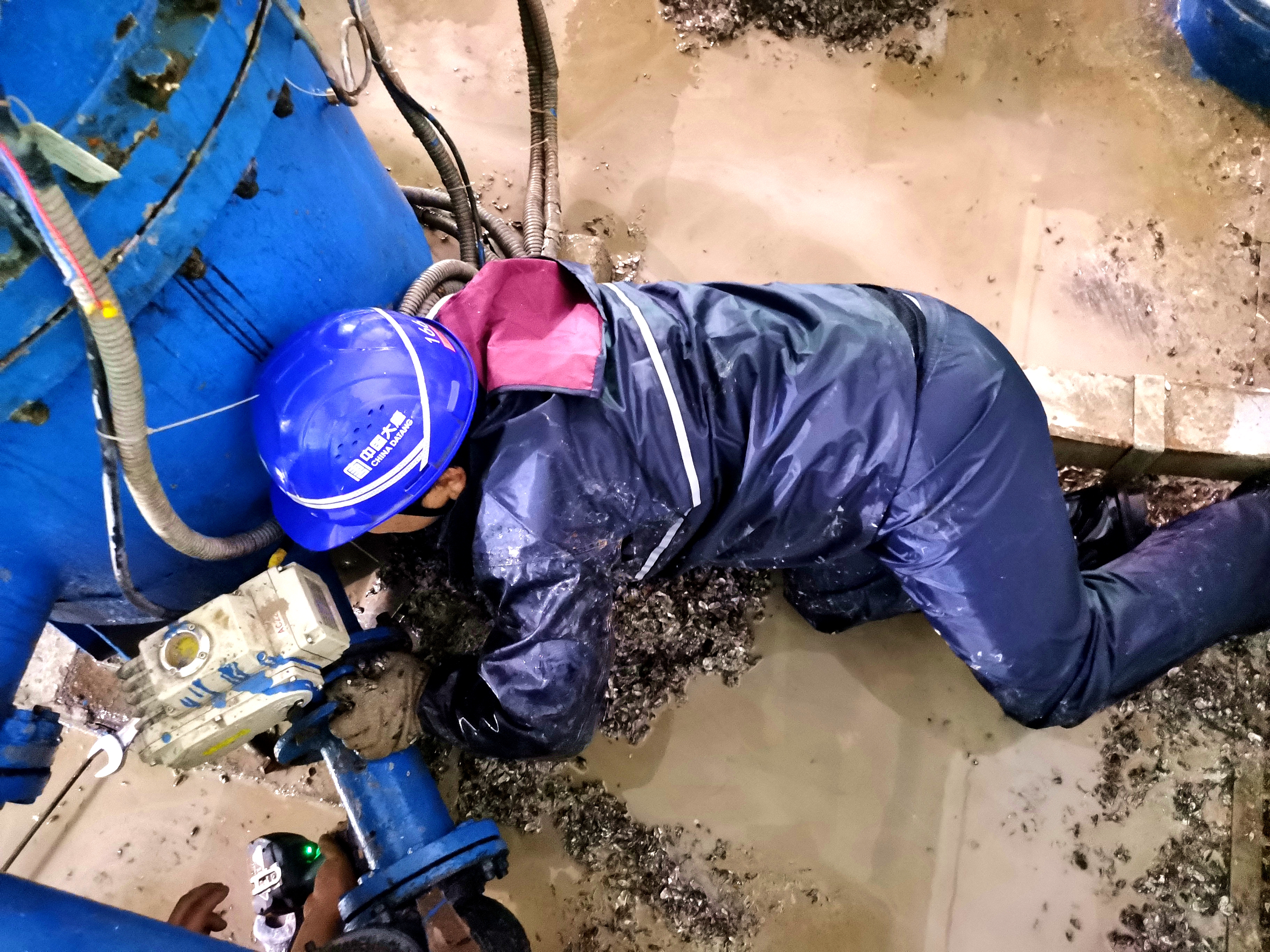 险情发生后,苗家坝水电站立即启动应急预案,迅速集结12名党员、青年突击队队员展开贝类堵塞紧急除险作业。