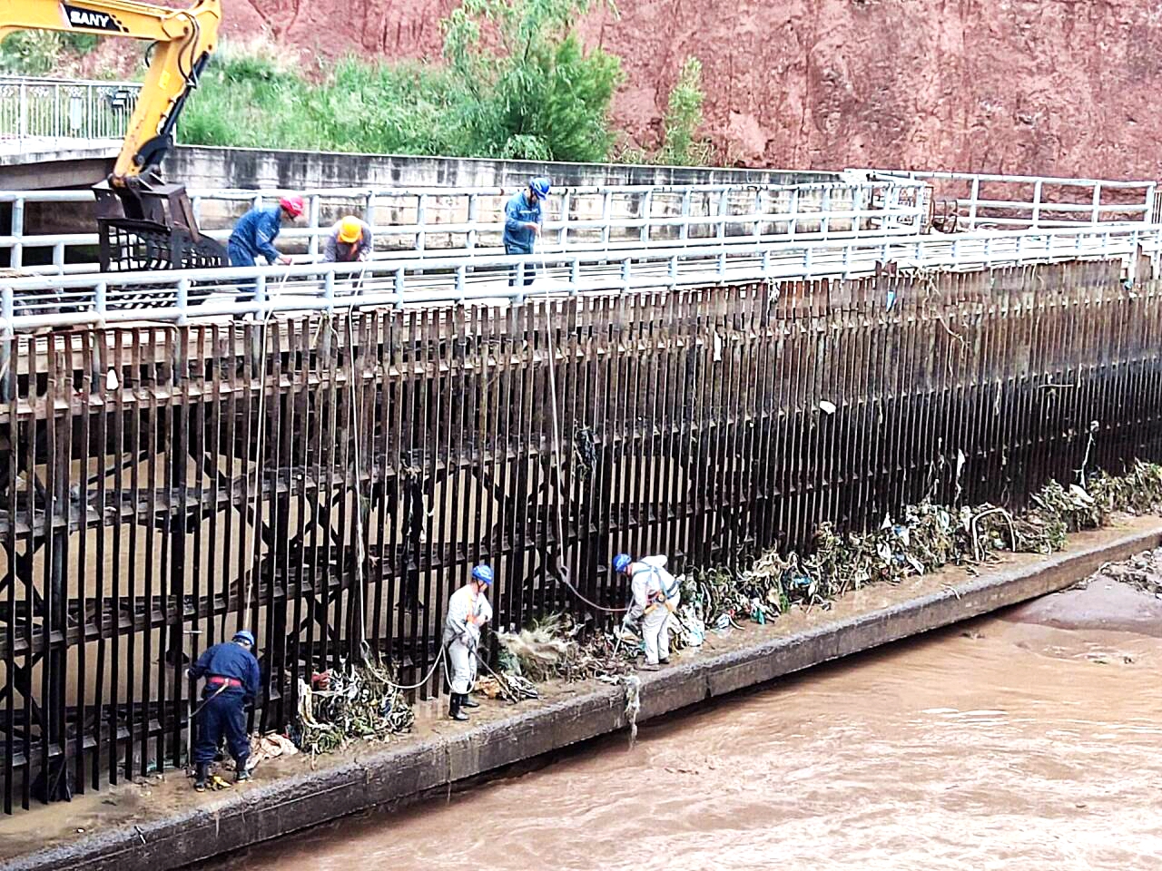“站长,必须立即清污!”李宁抓起电话,声音压过雨噪。不到3分钟,维护班班长林建平带着7名队员冲进雨幕。捞渣机履带轰鸣,他们要在洪峰到来前抢回每一滴水。