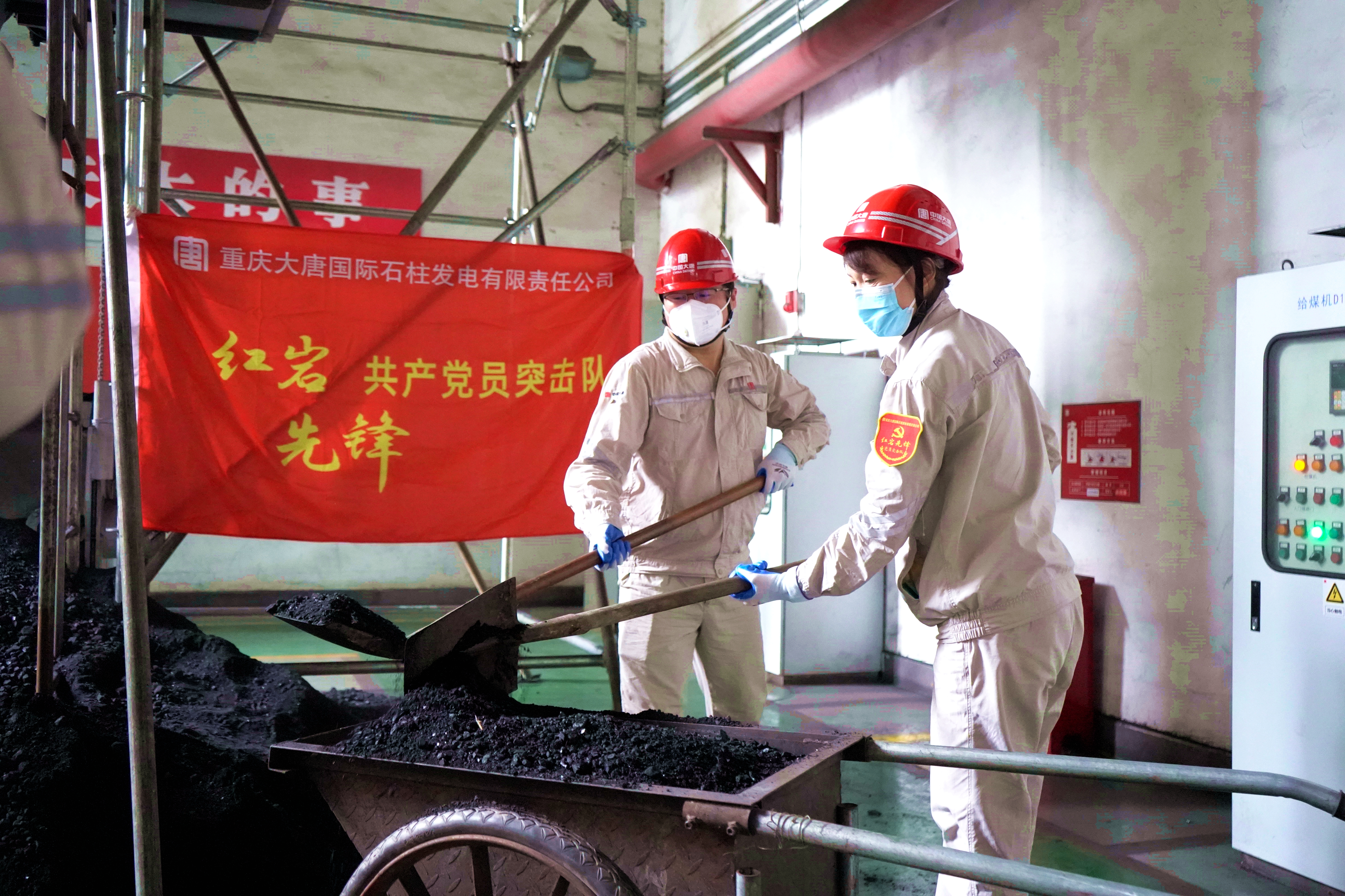 “任毅,你带几名党员去1号炉零米负责推车接卸。”突击队员拿着铁铲兵分两路,一组负责清理12.6米E给煤机处积煤,另一组负责1号炉0米处接卸装车,打响突击战的“第一枪”,7辆“装运车”迅速就位。