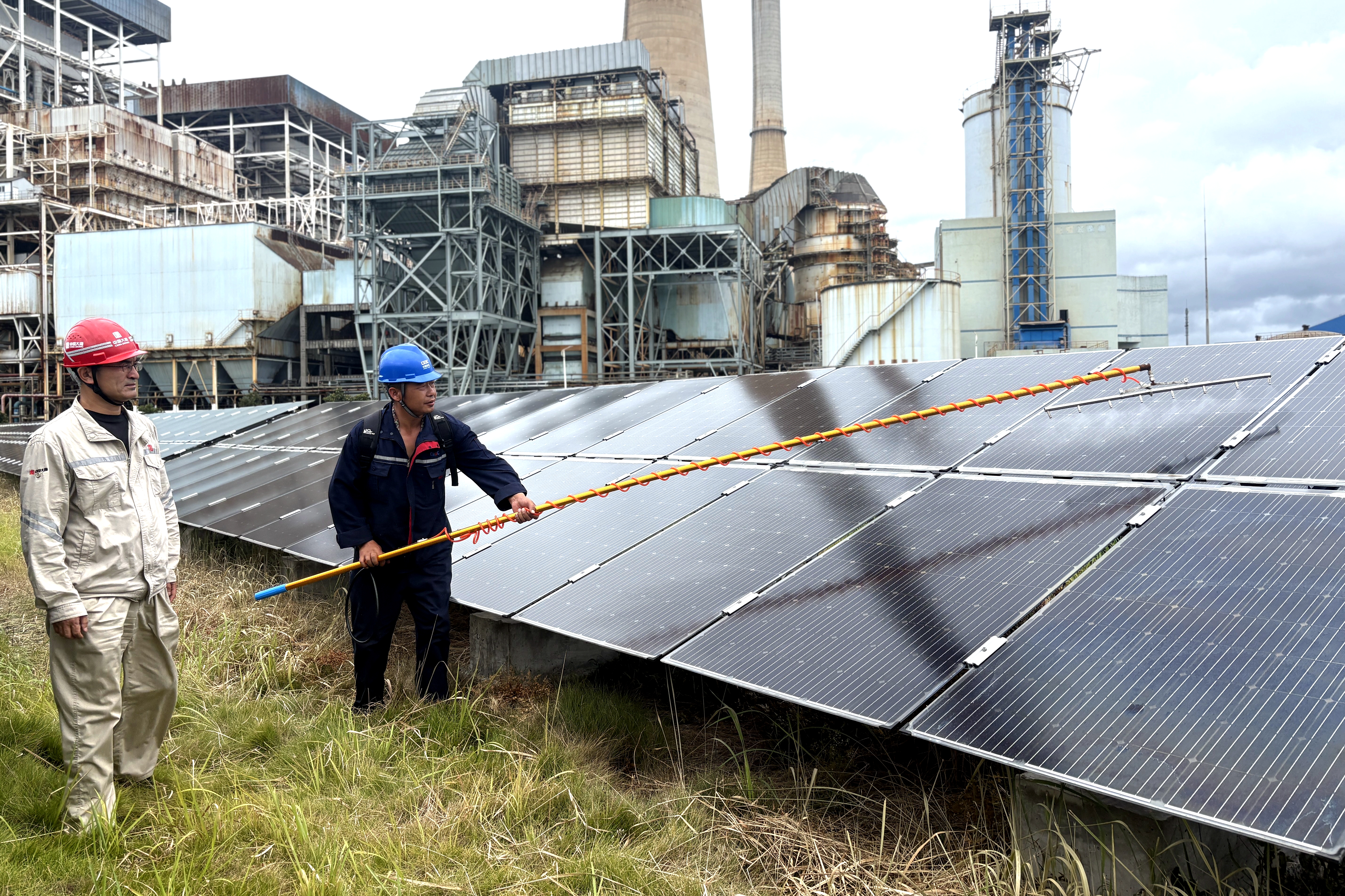 浙江新能源公司乌沙山厂区光伏电站位于火电厂生产区域二期场地,这里常年弥漫着白色蒸汽。蒸汽遇冷凝结后,会形成“石膏雨”,在光伏板表面结成水渍般的污垢。过去,该公司采用“人工+机器人”的清洁方式,往往刚清洗完毕,“石膏雨”便又随之落下,最多三天,光伏板就会和未清洗时一样。不仅如此,每次清洁时必须使用专用清洗剂,每块光伏板要清洗5遍以上,但“细心呵护”后发电效率依旧不理想。“组件清洗就是治标不治本,不加以重点防治,清洗也是徒劳。”宁波区域运维中心主任曹鲁心感慨道。