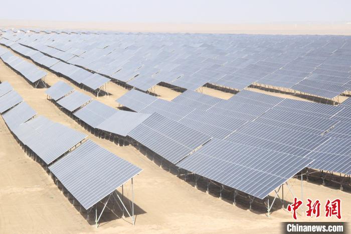 新疆昆玉市地处昆仑山北麓、塔克拉玛干沙漠南缘。近年来,当地探索构建防沙治沙新路径,在发展光伏清洁能源的同时,积极探索生态效益和经济效益的双赢。图为5日,大唐第十四师昆玉市100万千瓦光伏基地项目一期现场。马晓东 摄