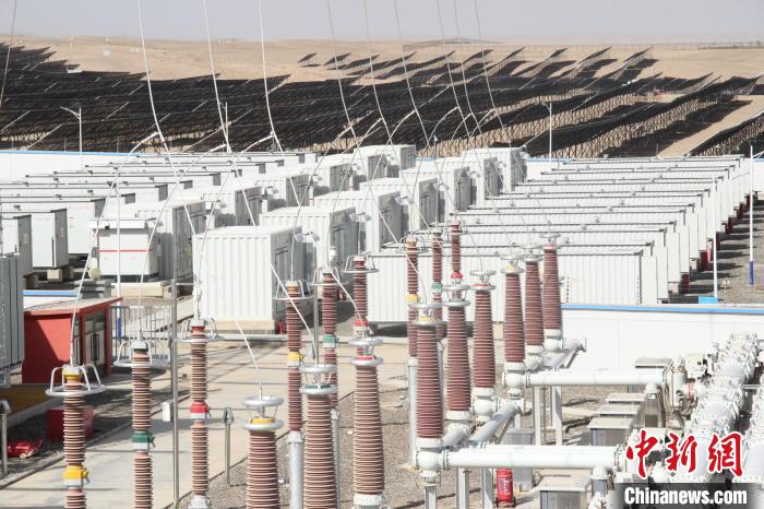 图为5日,大唐第十四师昆玉市100万千瓦光伏基地配套储能区。马晓东 摄