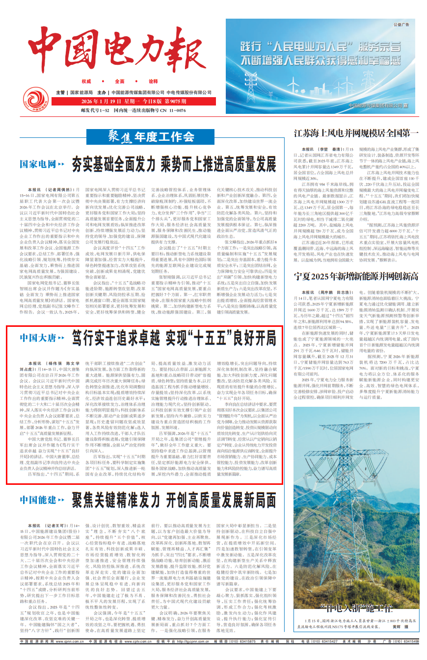 [中国电力报]2026-1-19-1best365官方网站笃行实干追求卓越 实现“十五五”良好开局