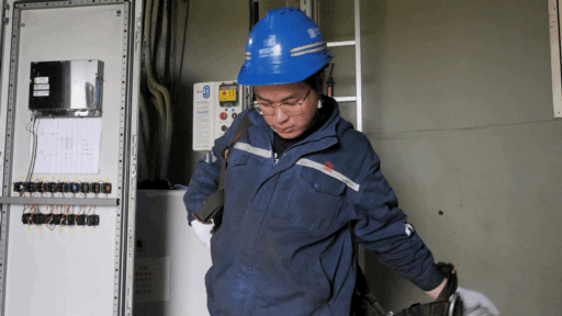 中午,我跟着送饭的车前往现场,还帮他们带去了公司工会“特供”的冰镇盐汽水。穿上厚重的连体服,踩着免爬器“滴嘟滴嘟”通向80米高的机舱,我感受着随着高度而逐渐上升的温度。