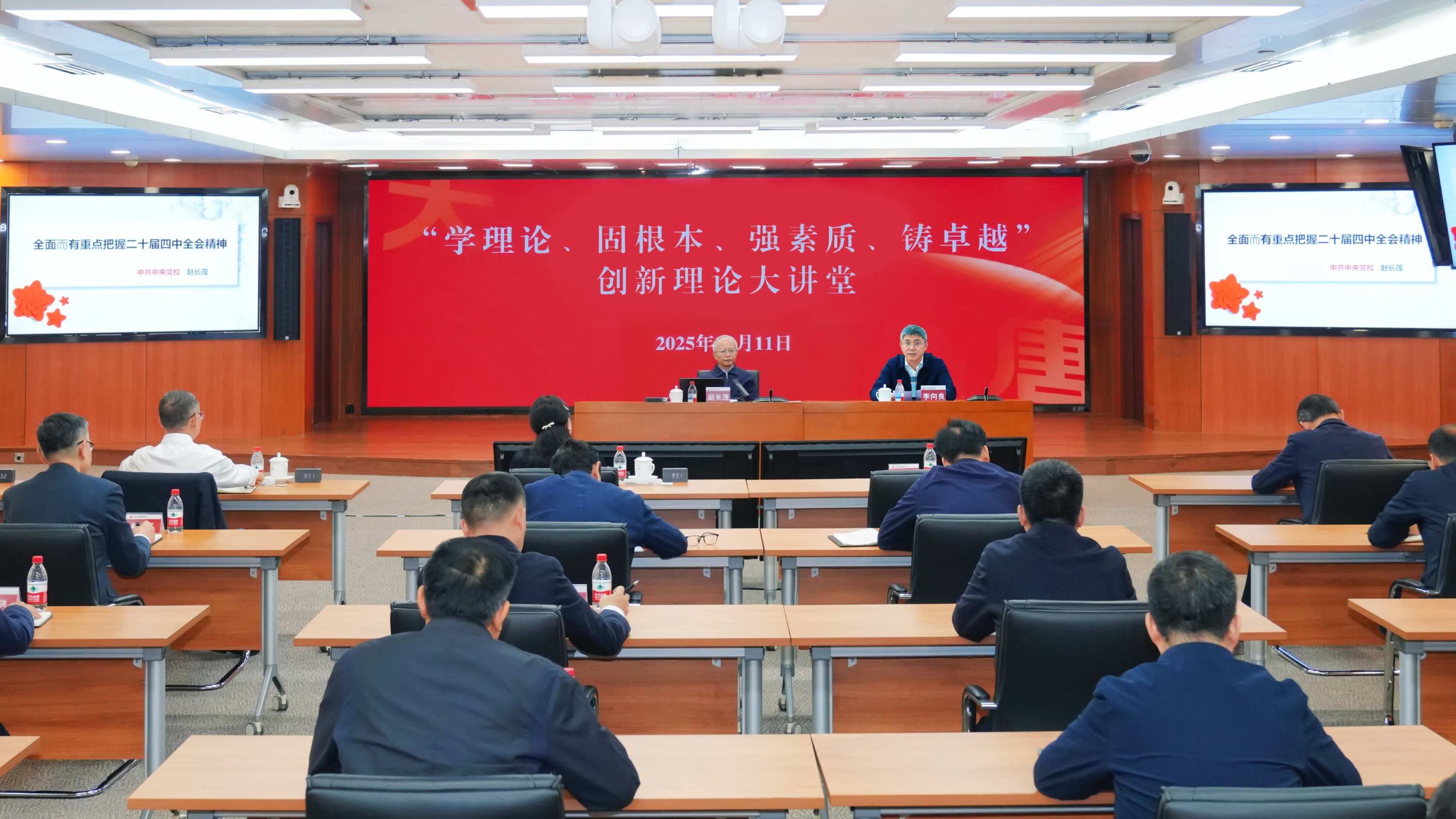 11月11日,best365官方网站集团有限公司“学理论、固根本、强素质、铸卓越”创新理论大讲堂开讲,邀请中国公共经济研究会会长、中央党校原副校长赵长茂作《深入学习贯彻党的二十届四中全会精神,推动“十五五”高质量开局》专题讲座。集团公司董事、总经理、党组副书记李向良主持讲座,集团公司领导王瑛、曲波、苟伟参加讲座。