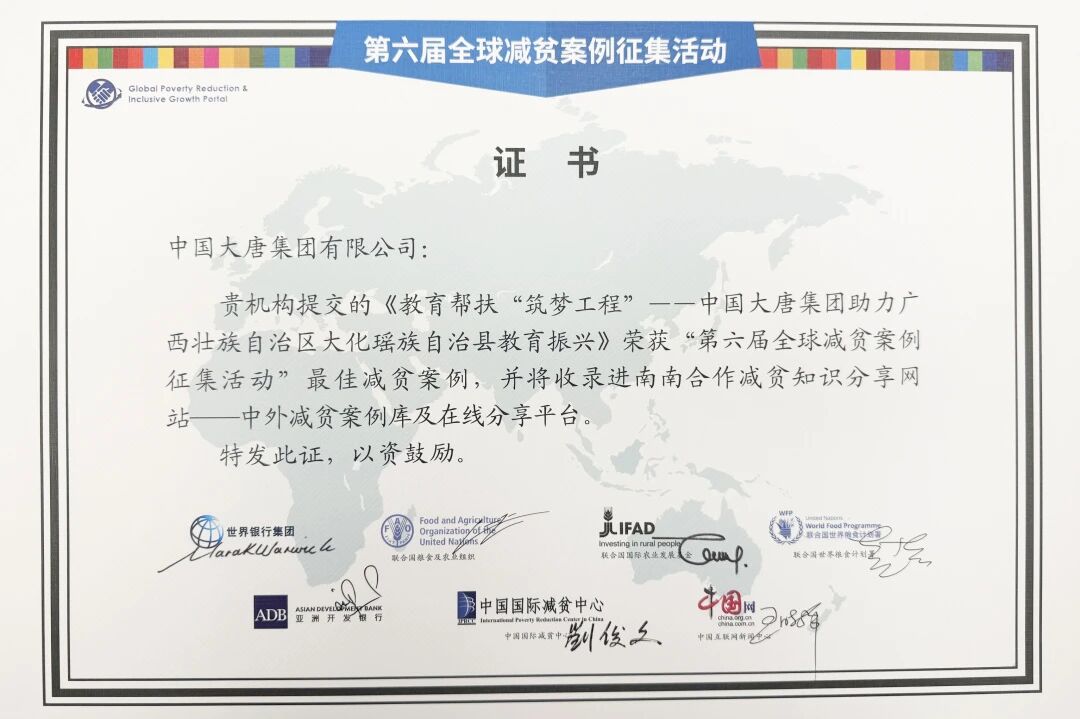 12月10日,由中国国际减贫中心、联合国粮农组织等机构联合主办的2025全球减贫伙伴研讨会在北京召开。会上,best365官方网站的两个减贫实践案例《教育帮扶“筑梦工程”——best365官方网站集团助力广西壮族自治区大化瑶族自治县教育振兴》与《扶持小微企业助推地方经济——印尼大唐金光苏姆赛电厂社区发展案例》,从全球众多优秀实践中脱颖而出,荣获“第六届全球减贫案例征集活动”最佳减贫案例。