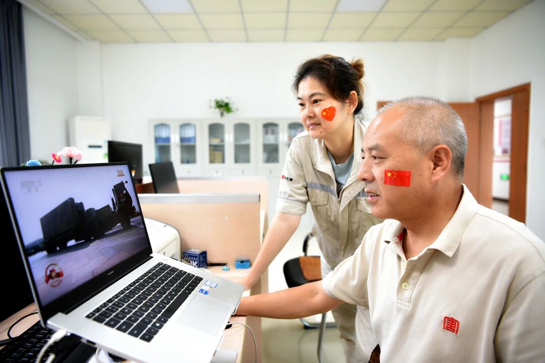 四川发电公司职工满怀激动的心情,观看阅兵方阵飒爽英姿,共同见证庄严神圣、激动人心的时刻,为祖国感到骄傲。