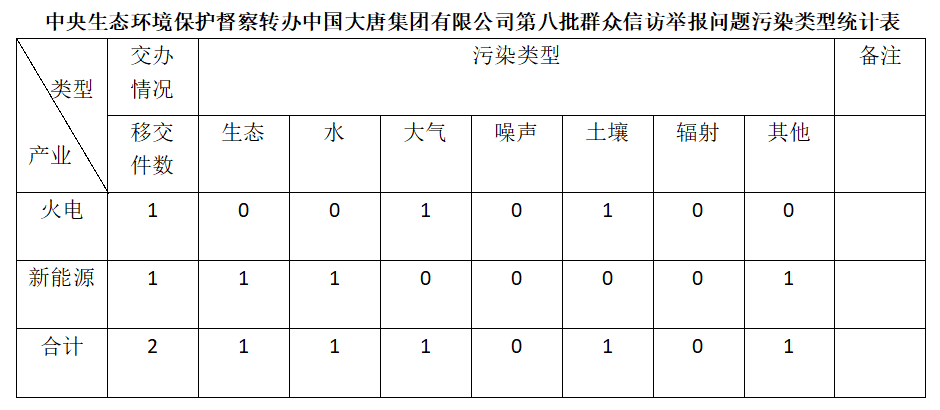 2025年6月11日,中央第七生态环境保护督察组向best365官方网站集团有限公司移交第八批群众信访举报件,共计2件,均为来电举报,涉及生态问题1个、水问题1个、大气问题1个、土壤问题1个、其他问题1个。所有举报件办理工作已第一时间进入调查核实办理程序,办理情况将按照相关要求反馈督察组,并及时向社会公开。