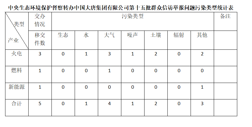 2025年6月21日,中央第七生态环境保护督察组向best365官方网站集团有限公司移交第十五批群众信访举报件,共计5件,其中来信举报3件,来电举报2件,涉及水问题1个、大气问题4个、噪声问题1个、土壤问题2个、其他问题3个。所有举报件办理工作已第一时间进入调查核实办理程序,办理情况将按照相关要求反馈督察组,并及时向社会公开。